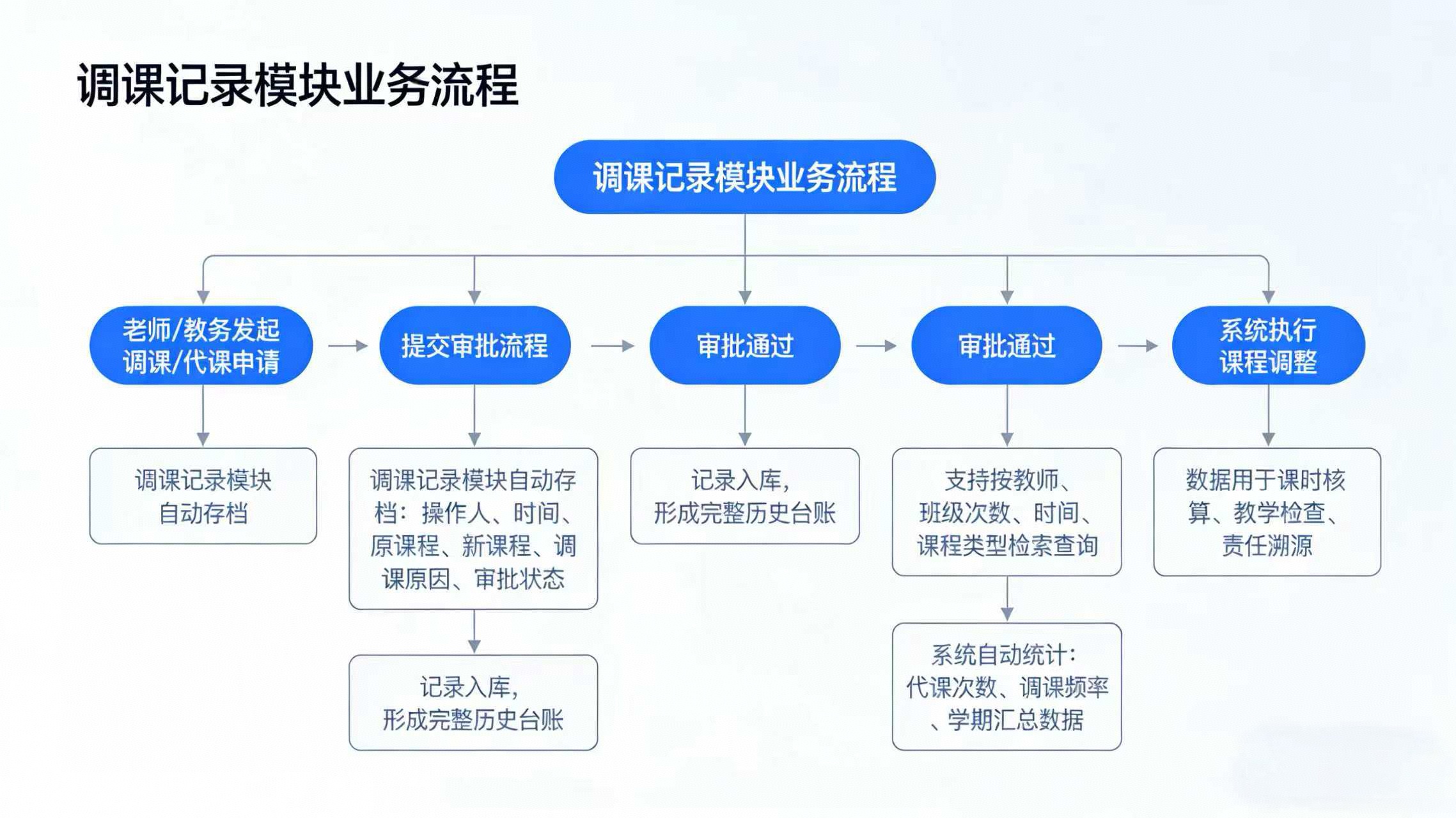 真正做到一次调课,全程留痕,随时可查。