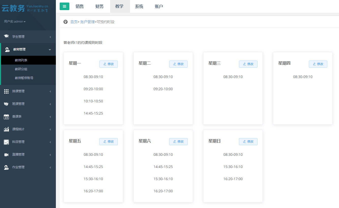 云教务与classin对接,学生老师在线自助约课,支持双语国际时区,支持国外教学点登陆访问使用
