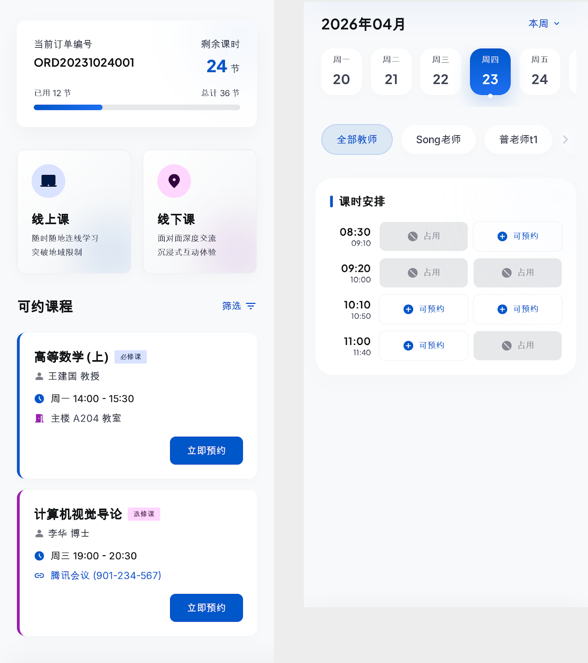 (1)云教务与classin实现对接,搭建学生、老师在线自助约课通道,无需人工干预,让约课流程更便捷,同时依托云教务的基础能力,保障约课数据实时同步、精准可查。