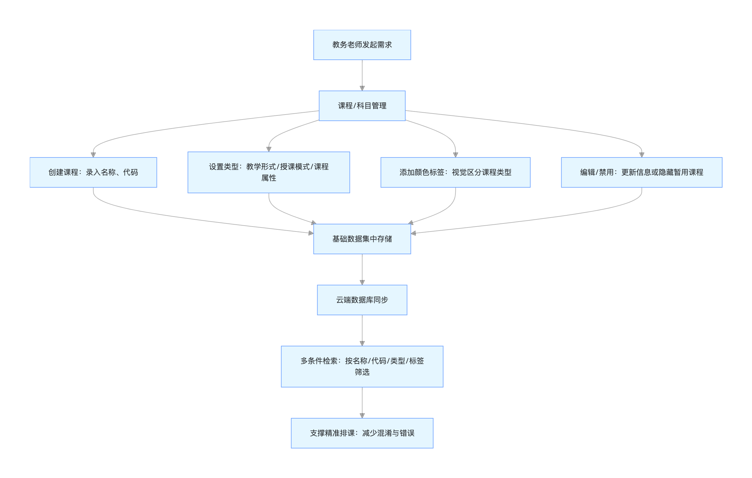 教师在日常排课过程中,常常需要反复核对课程信息,手动整理科目类型、授课形式等基础数据。分散的表格和文档导致版本混乱,修改时易遗漏关键属性,严重影响排课的准确性和效率。
